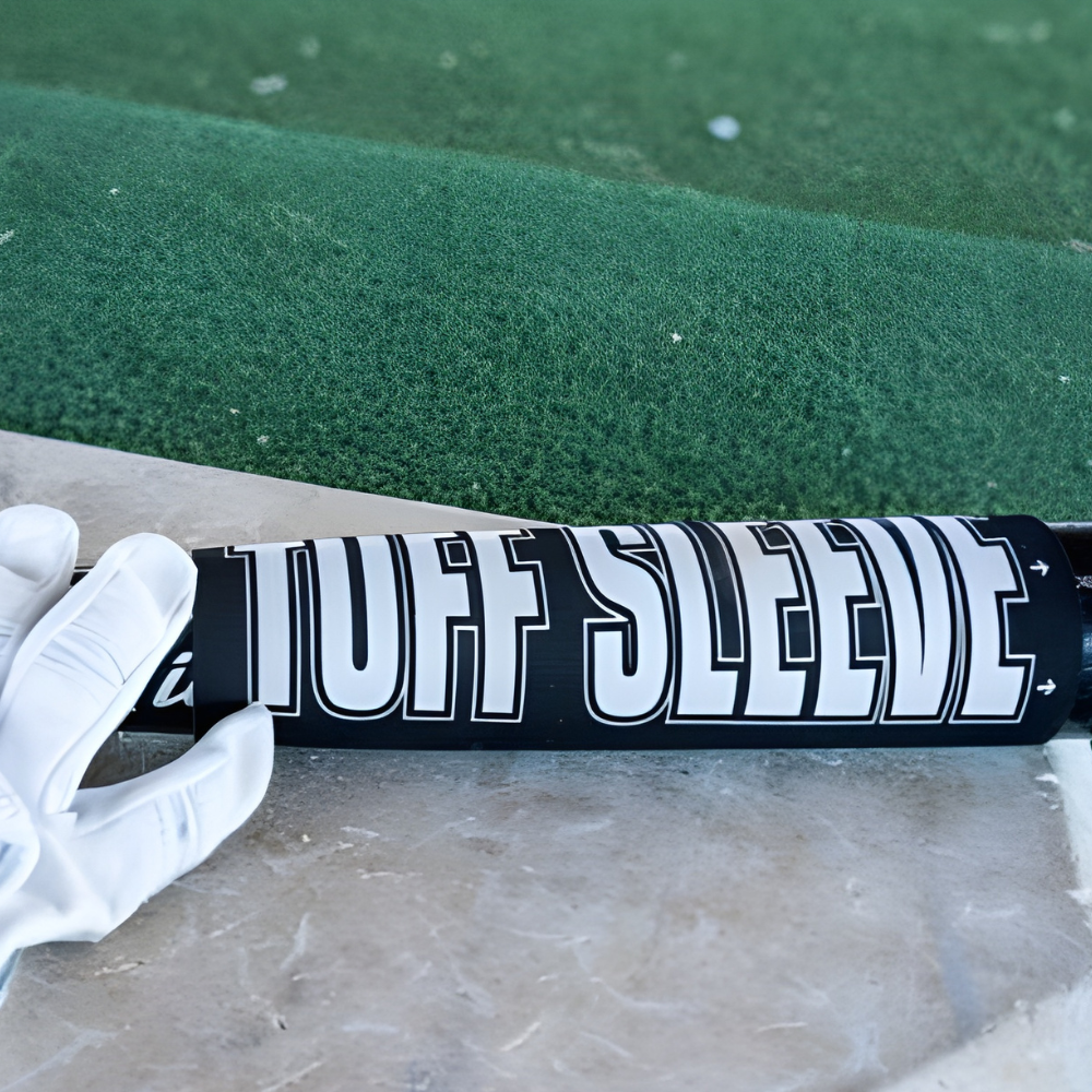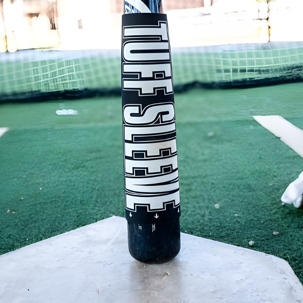 The Tuff Sleeve from Tuff Toe® is a tapered tube with a tough rubber outer surface and a cotton interior. It slides easily onto wooden or aluminum baseball bats. It has been tested to eliminate 25% of the force of impact between ball and bat without affecting ball flight, thus reducing vibration and extending bat life.