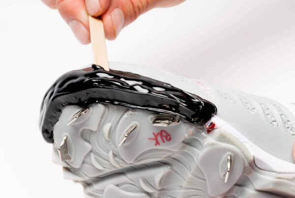 TUFF TOE™ Pro v2 is applied as a thick 2 Part Epoxy/Polyurethane. It cures to a durable yet flexible protective layer to form a permanent protective bond to any footwear, new or used.